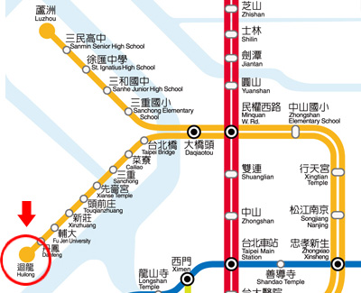 To Hueilong ,then transfer to the 712 bus to Wu Lin elementary school and walk about 10 minutes to arrive. Or take the Orange 26 to Guangrong St. and walk about 8 minutes to arrive.