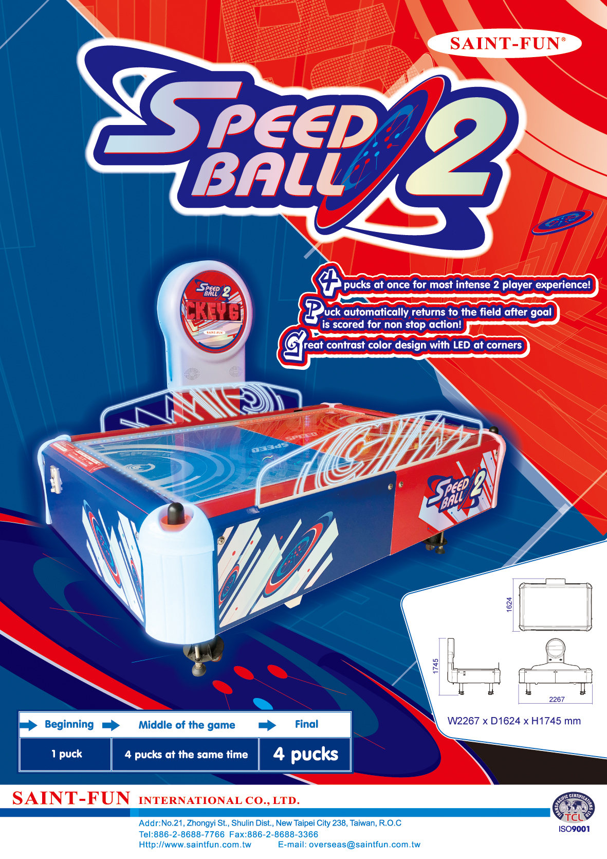 - 4 pucks at once for most intense 2 player experience!