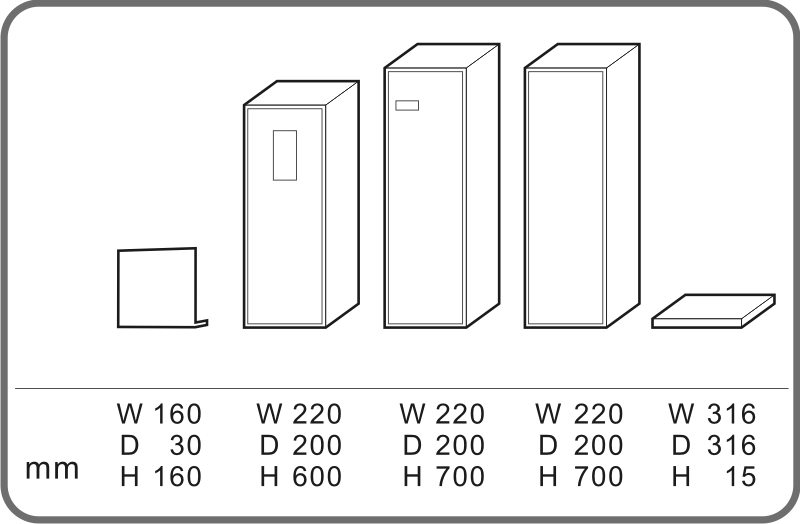 - Dimensions(mm):W 220 * D 200 * H 700.
