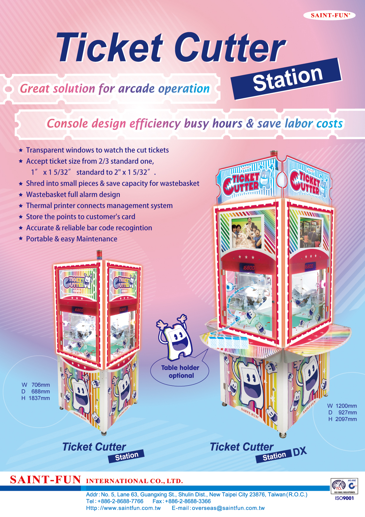 ●Accept ticket size from 2/3 standard one,
