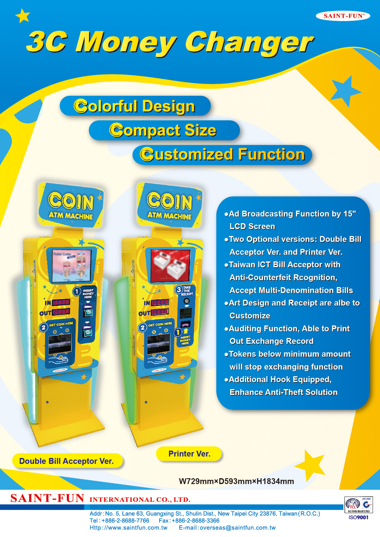 Two Optional version: Double Bill Acceptor Ver. and Printer Ver.